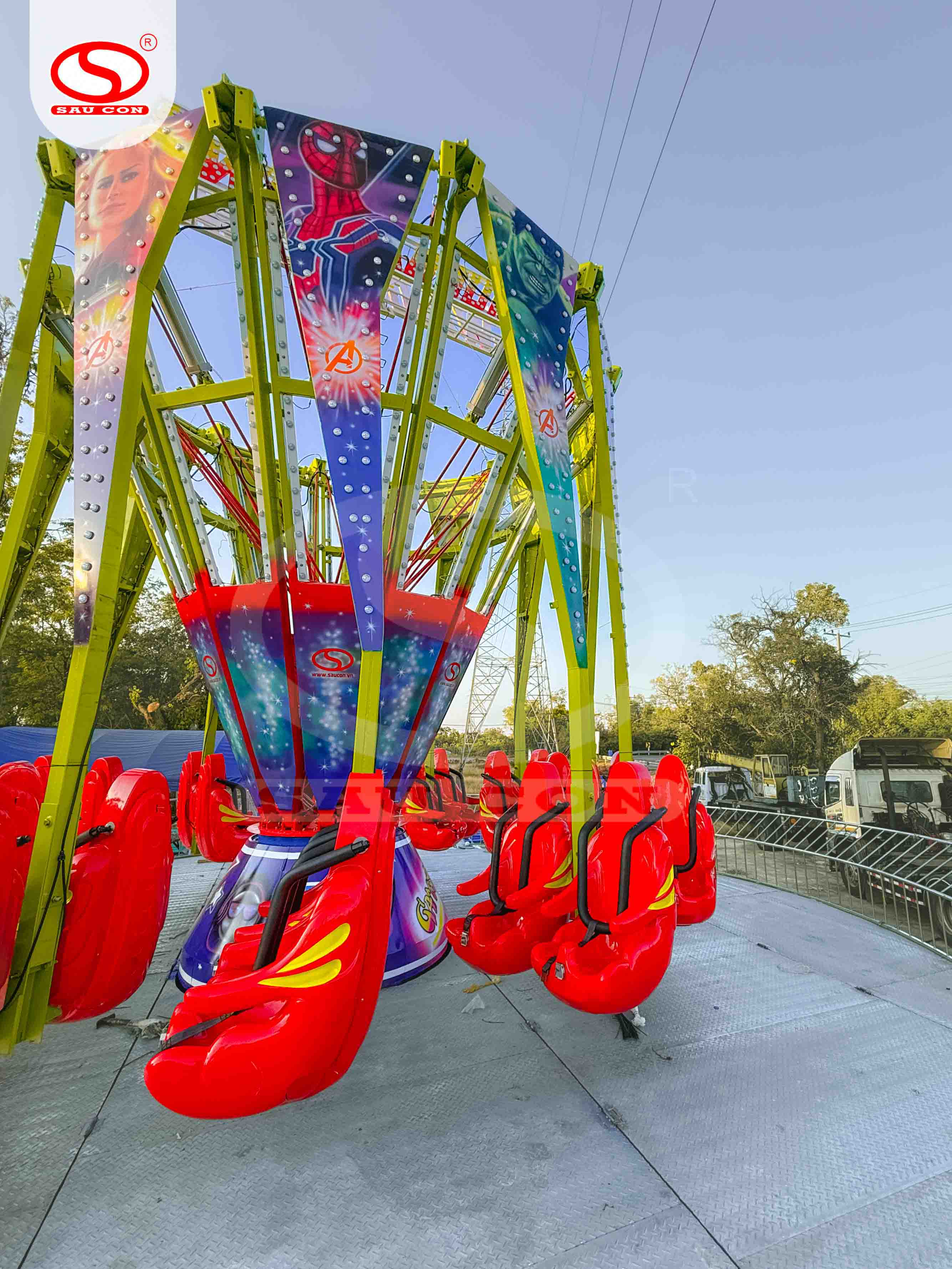 Hệ thống bao gồm một trục trung tâm vững chắc kết hợp với các cánh tay đòn chịu lực, đầu mỗi cánh tay là những cabin (ghế ngồi) được trang bị khóa an toàn chuyên dụng. Khi vận hành, các cánh tay đòn sẽ nhấc bổng người chơi lên không trung và bắt đầu quay tròn với tốc độ thay đổi linh hoạt như đang bay lượn tự do giữa bầu trời. Sự kết hợp giữa tốc độ quay và độ nghiêng của ghế tạo nên những cung bậc cảm xúc phấn khích, bùng nổ, khiến bất kỳ ai cũng muốn thử lại lần thứ hai.