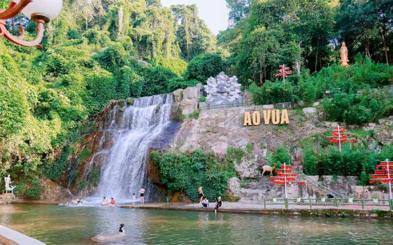 Nằm trải dài dưới chân núi Tản Viên, Ao Vua là một trong những khu du lịch được nhiều gia đình lựa chọn khi muốn đổi gió cuối tuần. Không gian trong lành với thác nước, suối mát, hồ Ngọc Hoa thơ mộng. Cùng hệ thống dịch vụ đa dạng giúp nơi đây phù hợp cho cả người lớn tuổi và trẻ nhỏ.