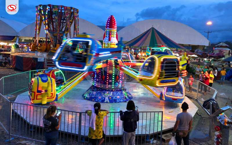 • Khu vui chơi trong nhà: Nhờ vận hành bằng điện và thủy lực, tiếng ồn được kiểm soát tốt (nếu bảo trì đúng cách), phù hợp với các trung tâm thương mại có trần cao.