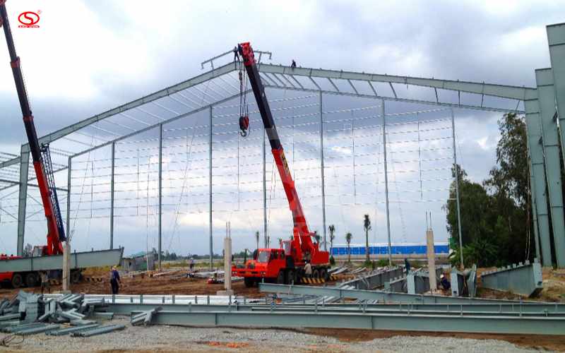- Khu công nghiệp & Nhà xưởng sản xuất: Nơi cần không gian rộng lớn, nhịp vượt lớn (khẩu độ rộng) để bố trí dây chuyền máy móc mà không bị vướng cột giữa.